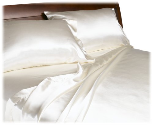 Studio : Royal Opulence Publisher : Royal Opulence Binding : Kitchen Product Description Give in to an enchanted night's sleep with this luxurious set of satin sheets for California King beds in high-fashion ivory. This set includes a flat sheet, fitted sheet, and two King pillowcases. Smooth and silky with a lustrous sheen, these satin sheets are made of 100 percent woven polyester satin. The fitted sheets feature elastic corners for a secure fit and 14-inch pockets that can fit mattresses up to 17 inches deep. They're machine washable for easy care. 0
