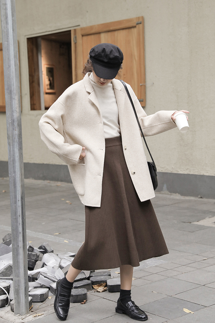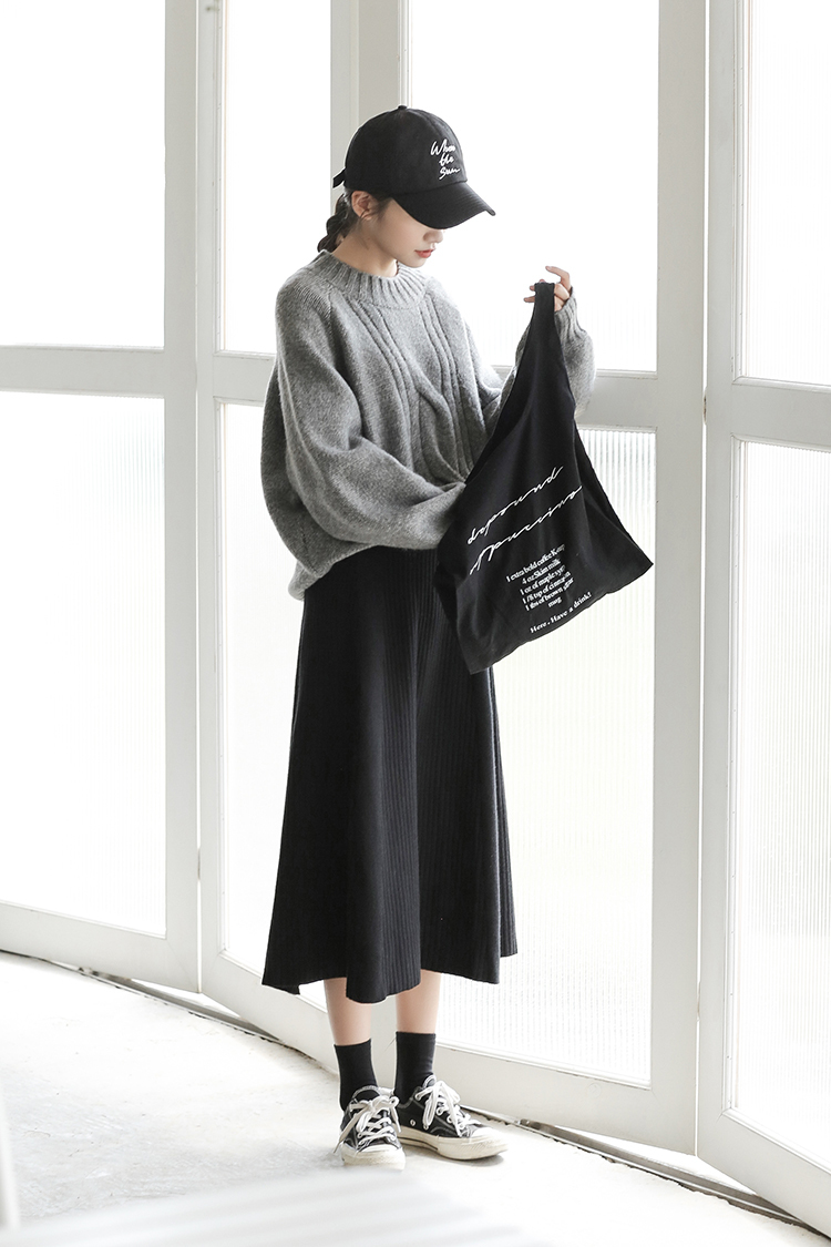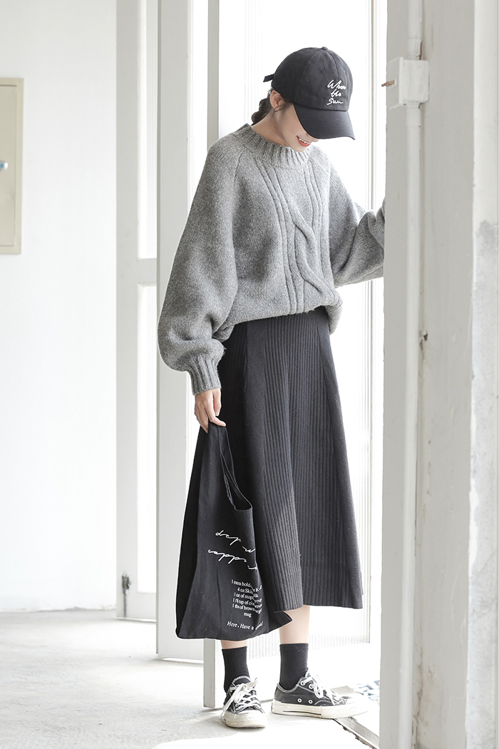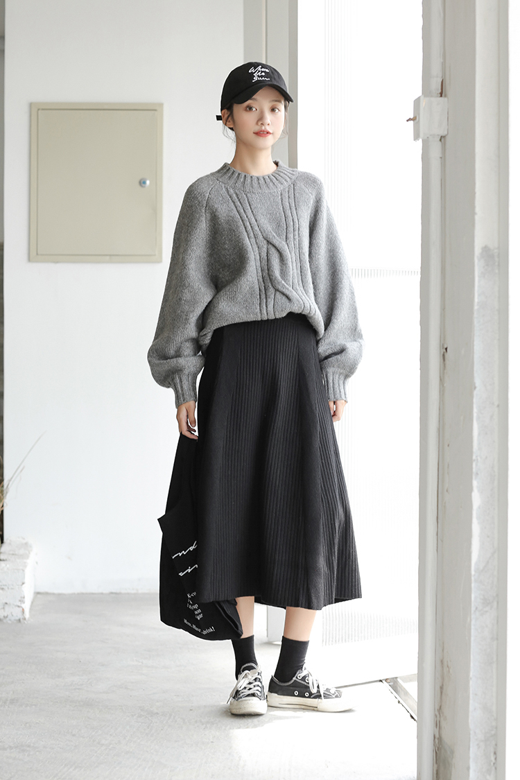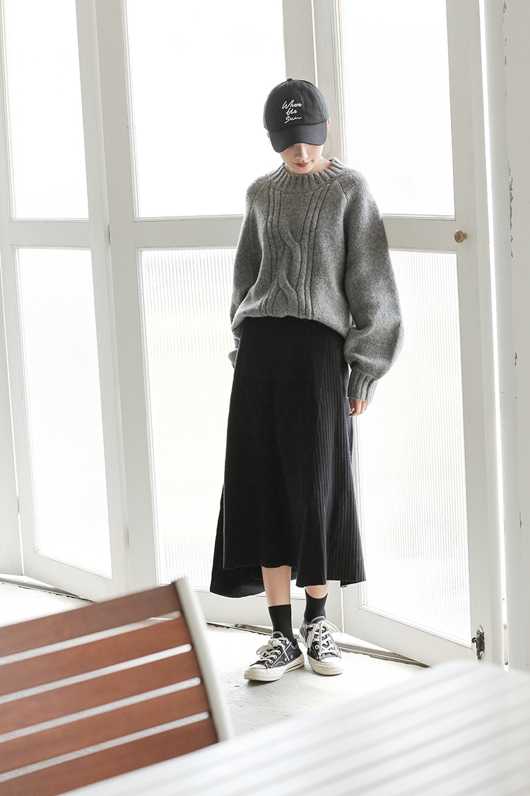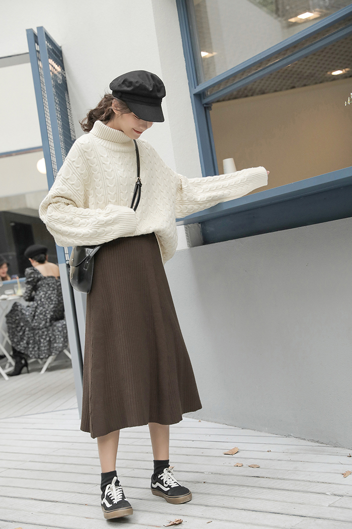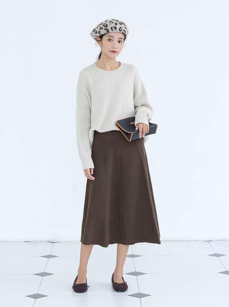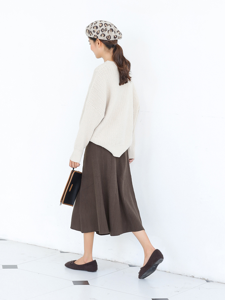 落ち着いた色合いが大人っぽい、清楚な雰囲気の膝下丈ニットスカートです。