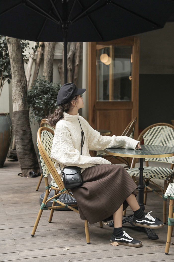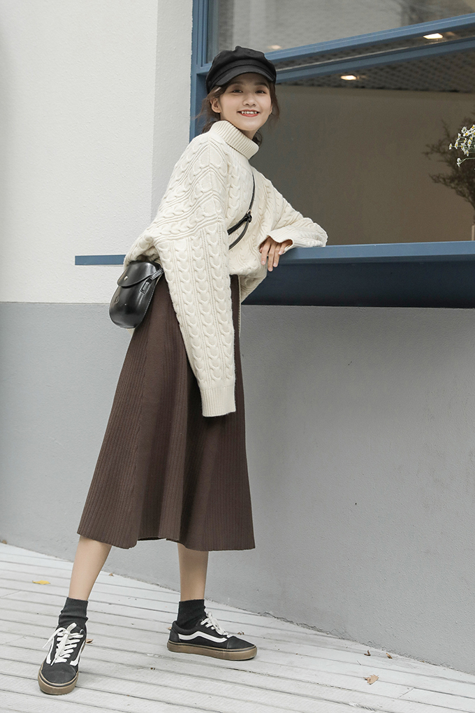 ウエストはゴムで履きやすく、ハイウエストでリブ編みなのですらっとした印象に仕上がります。