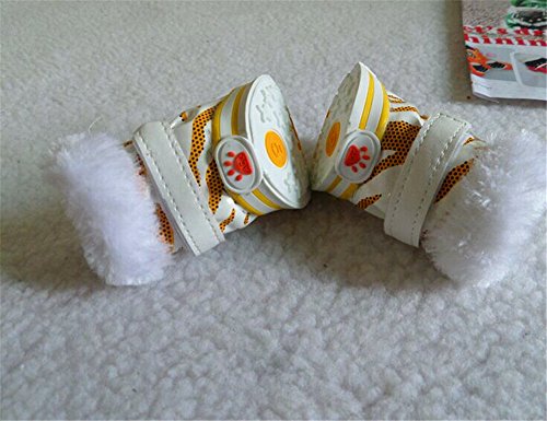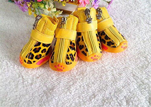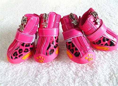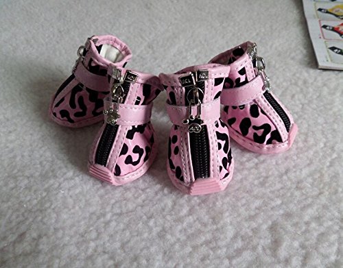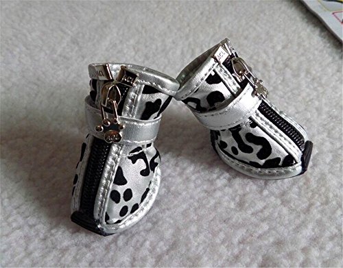 -. Feature : Fit for the dog paw size: length 2in; width 1.6in. / Easy to put on - difficult to slip off. Set of 4 boots. / Measure dog paw width while pressing lightly on paw, on piece of paper. / Dog boot keep paws safe from heat, cold, ice, salt, stones, and abrasive surfaces / Perfect for everyday wear and casual or formal occasion.