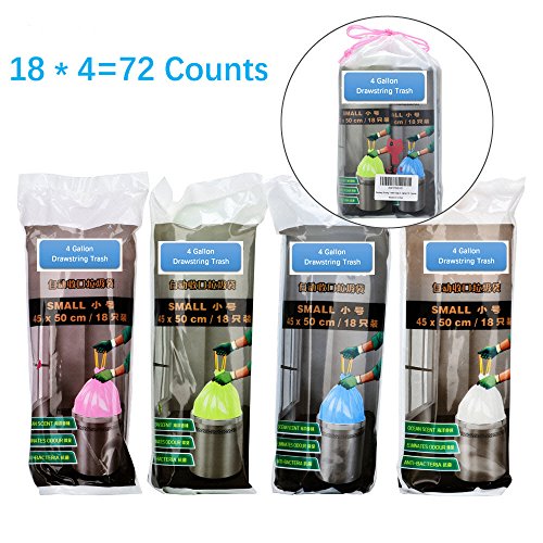 Doukey 4 Gallon Drawstring Trash Bags Odor Block Garbage Bags Heavy Duty Waste Basket Bags 72 Counts