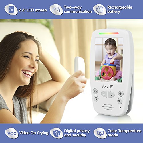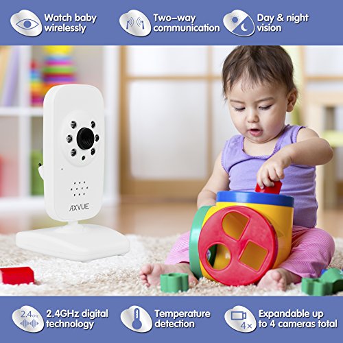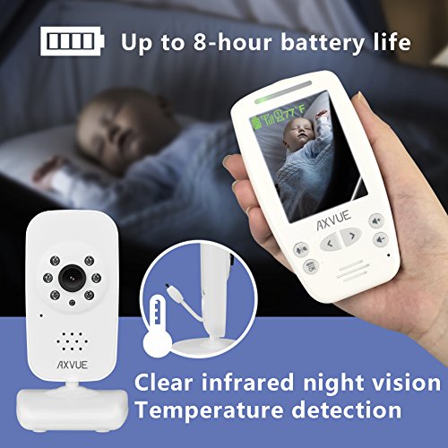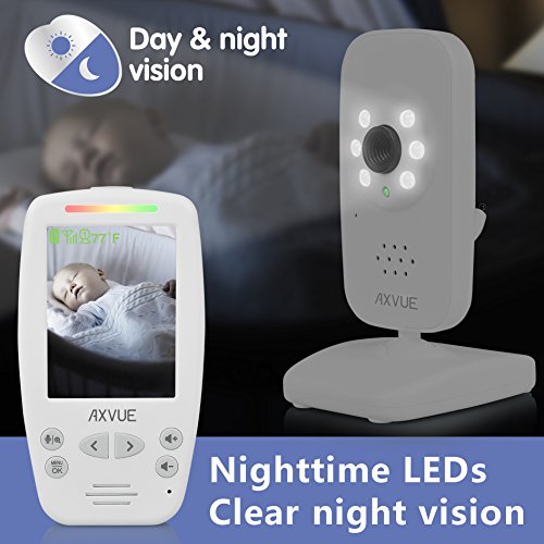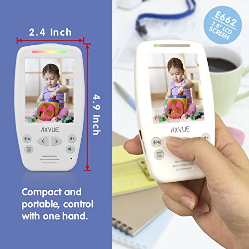 Studio : AXVUE INC. Publisher : AXVUE INC. Binding : Baby Product Product Description AXVUE E662 Video Baby Monitor with Night Vision and Night Light AXVUE E662 Video Baby Monitor with Night Vision and Night Light ("the product") is an easy device to monitor your baby's safety! It is consisted of one cameras and one 2.8" portable TFT-LCD screen, which are integrated with advanced 2.4GHz digital wireless technology, for the benefit of high quality video performance and secure privacy. The product is versatile with features as below - Super long distance and standby time up to 800 feet. Temperature detection and display. See different angle by Pan Tilt Camera, which can be operated by the portable unit. 2.8 inch TFT-LCD Screen. Sound Lights Alert. Color volume display. Clear Automated Night Vision. 2-way Talk (send your voice to the camera). Most convenient operations and utilities. Kick-stand on portable screen, quick video on/off, digital zoom in/out, select cameras, common A/C adaptors, low battery/out of range indicator. For more information, keep following our social media by www.axvue.com or #axvue. AXVUE, is a world leading designer, concentrating in baby's safety! 0