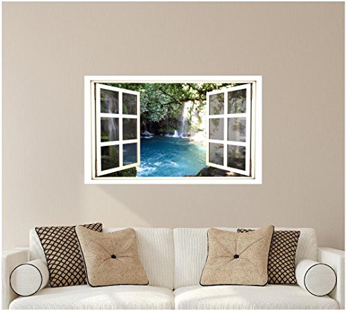 -. Title : 24" Window Scape Instant View Hidden Waterfall Cove 1 Wall Decal Graphic Sticker Mural Home Kids Game Room Art Decor NEW !!