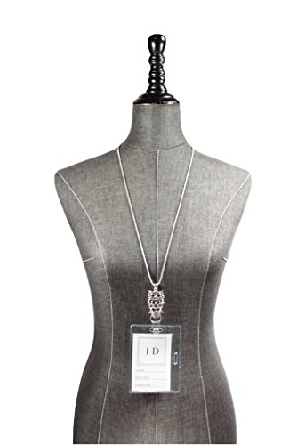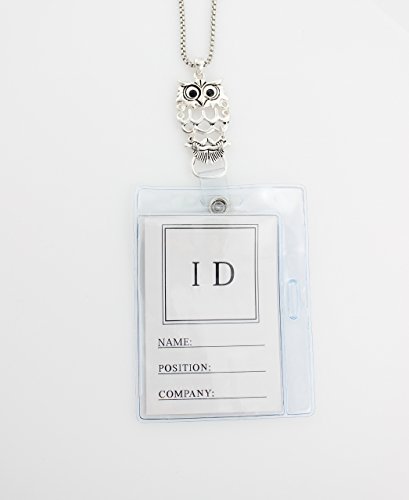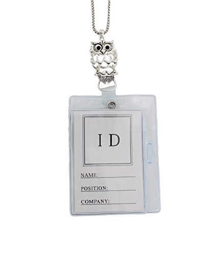 Owl Shaped with Black Rhinestone Eyes Silver Tone Lanyard ID Badge Holder Necklace