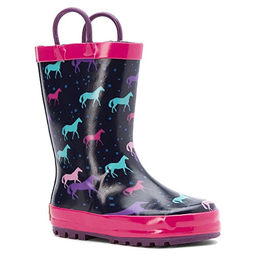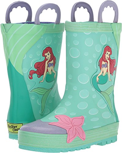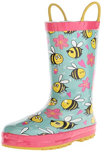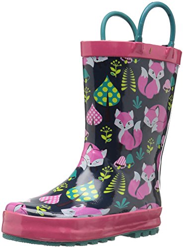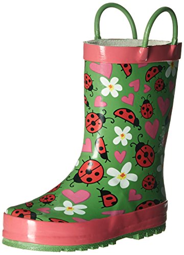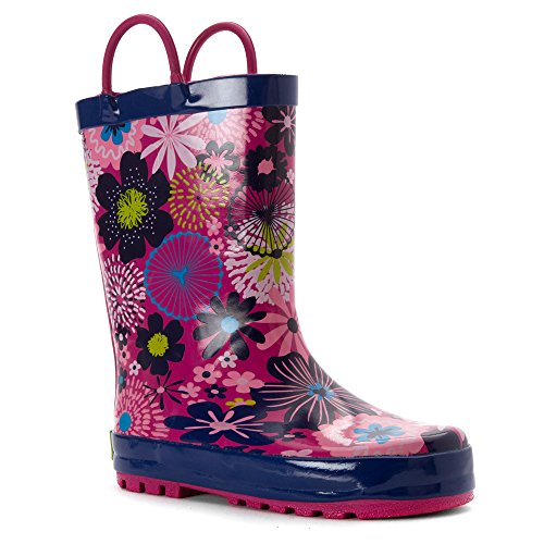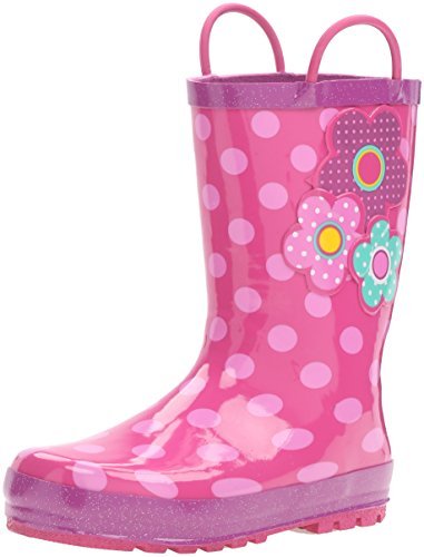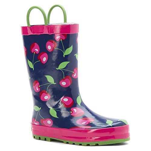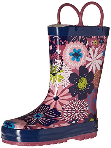 This adorable rain boot from Western Chief features easy-on pull handles and vibrant detail.