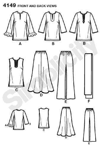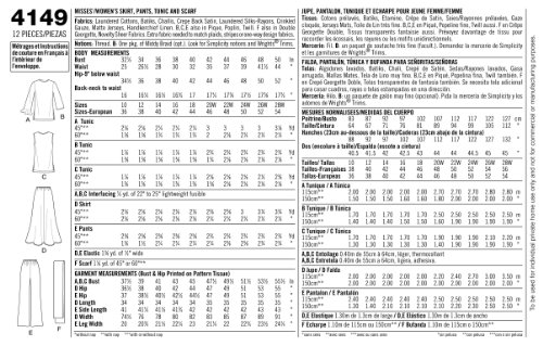 Simplicity Easy to Sew Pattern 4149 Misses Skirt, Pants, Tunic Top and Scarf Sizes 10-12-17-16-18
