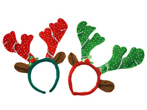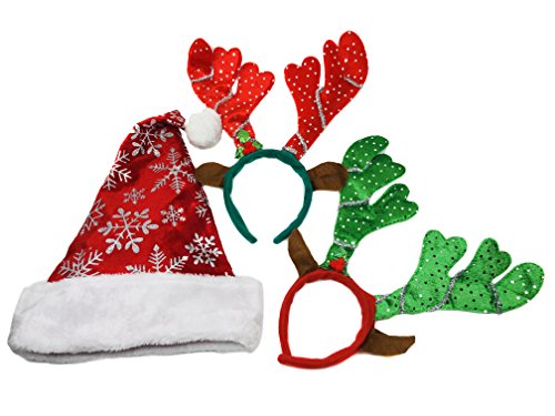 -. Title : Santa Hat Classic Velvet Red w/ Fluffy White Cuff (2-Pack) and Reindeer Antlers Headbands (2-pack) Christmas Party Props for Adults and Kids