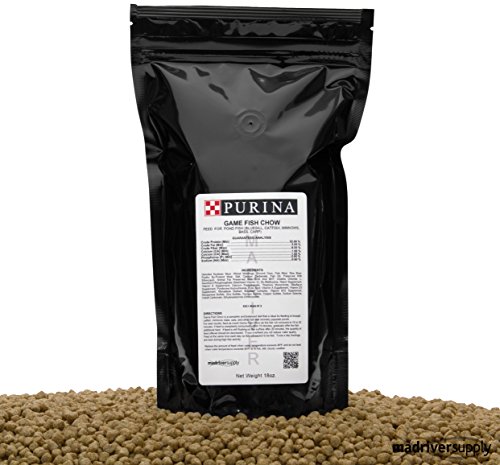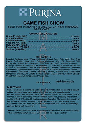 Purina Mills Game Fish Chow, 32% Protein, Extruded Multi-Particle Size Floating Diet For Bass, Bluegill, Catfish, Minnows, Carp, And Other Fish That Normally Populate Ponds, 18 Ounces