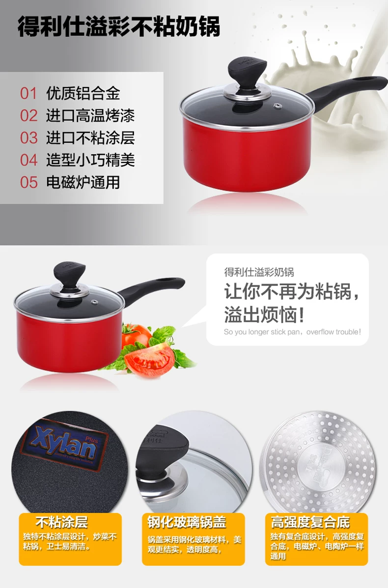 小而美奶锅 美好的一天 无论是 热奶 热豆浆 煮粥 煲个汤 方便至极 得利仕奶锅美国华福不粘技术 奶锅也可以煎鸡蛋  加上钢化玻璃盖子 特殊设计的 防溢孔 更加方便实用  快给自己的身体补补水吧 亲们!