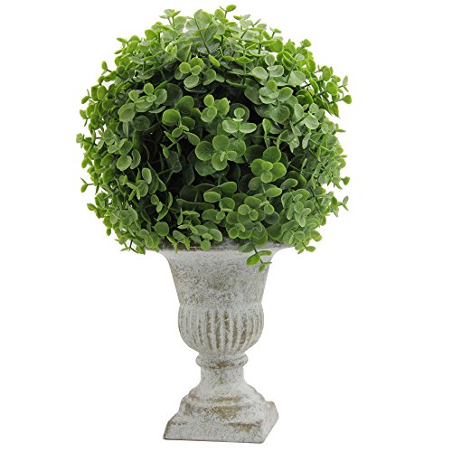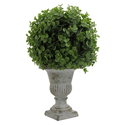 Admired By Nature GG7655-GREEN 13" Tall Artificial Desktop Potted Eucalyptus Ball with Ceramic Pot, Green