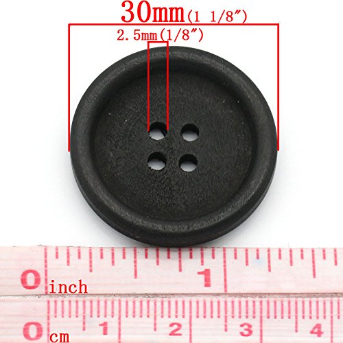 PEPPERLONELY Brand 40PC Black 4 Hole Scrapbooking Sewing Wood Buttons 30mm(1-1/6 Inch)