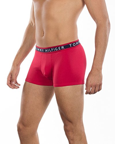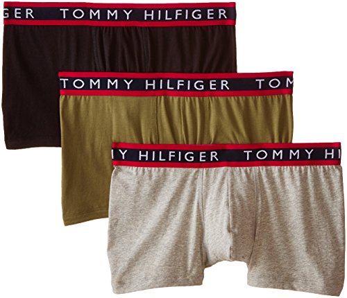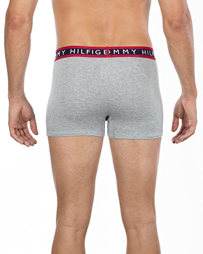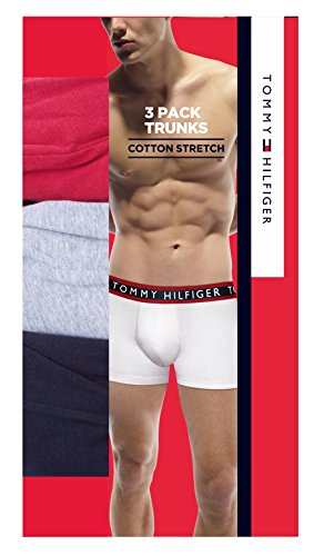 Tommy Hilfiger Men's Underwear 3 Pack Cotton Stretch Trunks, Black/Grey/Red, Large/36-38