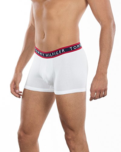Tommy Hilfiger Men's Underwear 3 Pack Cotton Stretch Trunks, White, Medium/32-34