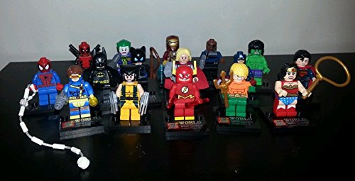 - Feature : Awesome Minifigure Super Hero Characters from DC, Marvel, Avengers and More / Lots of Fun & Normally Valued at $99.99 for the 16 piece set / Figures come packages in plastic bags / Compatible with Lego / Quantity: 1 Lot (16 Peice / lot)