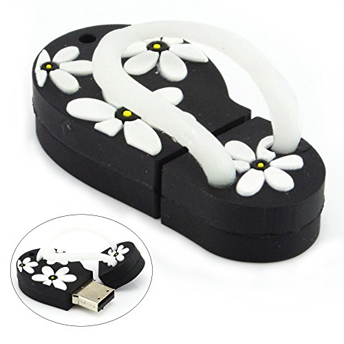 16GB USB Flash Drive with Flower Pattern Beach Sandal Shape (Black)