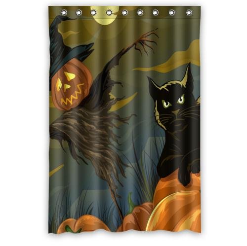 -. Title : Personalized Design Halloween Pumpkin Theme With Black Cat And Scarecrow Pattern P.R.Int High Quality Polyester Fabric Shower Curtains,48(w) x 72(h)