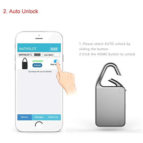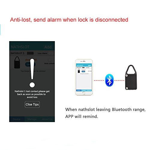 -. Feature : It is a lock for bike,bag,Suitcase and door.The lock connects to your smartphone via Bluetooth and allows for remote unlock. / 2,you can open lock by APP through Bluetooth or input password / 3.It is anti-lost. Turn the loss-Alarm on, you will be prompted when you lose connected from your App. / 4.supports IOS and Android phones with Bluetooth 4.0.