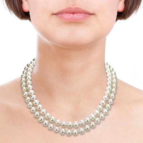 -. Title : Sterling Silver 2-rows White Freshwater Cultured High Luster Pearl Necklace, 17"