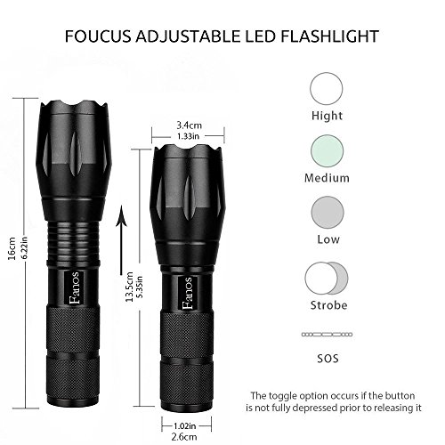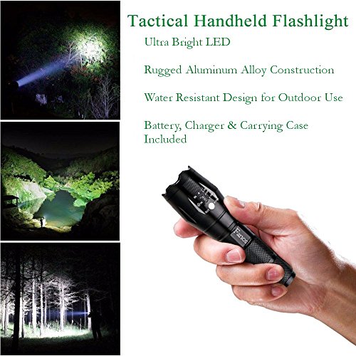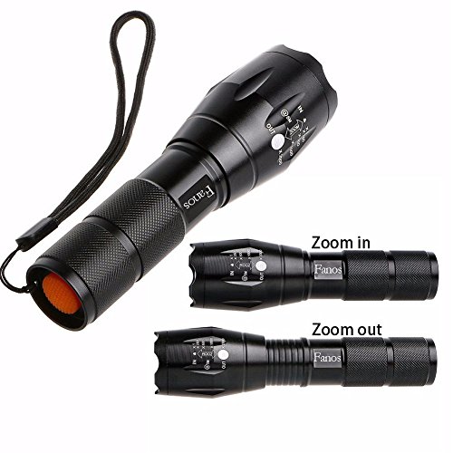 Fanos Bright LED Tactical Zoom/Focus Flashlight 5 Modes Water Resistant with Rechargeable Battery & Charger