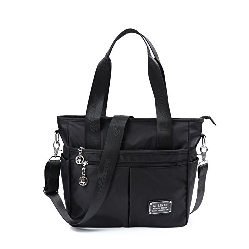 -. Title : TENXITER Nylon Tote Bag-Multi-Pocketed,Water-Resistant Travel Purse with Adjustable and Removable Crossbody Strap