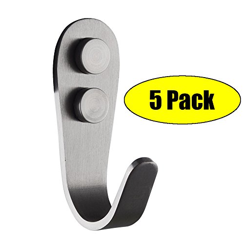 KES SUS 304 Stainless Steel Storage Organizer Hook Bathroom Single Robe Towel Coat Hook Rustproof Kitchen Utensil Utility Hanger SOLID Metal Heavy Duty Wall Mount, Brushed Finish, 5 Pack, A2062-P5