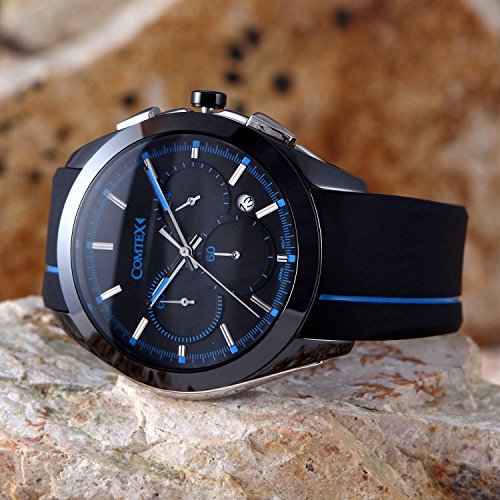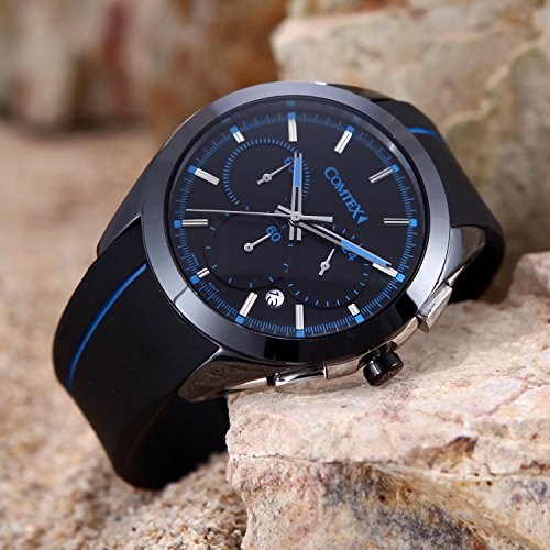 Comtex COMTEX 손목시계 블랙 스포츠 크로노그래프 손목시계 쿼츠 시계 맨즈 …