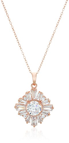 -. Title : Rose Gold Plated Sterling Silver Baguette Cubic Zirconia Pendant Necklace, 18"