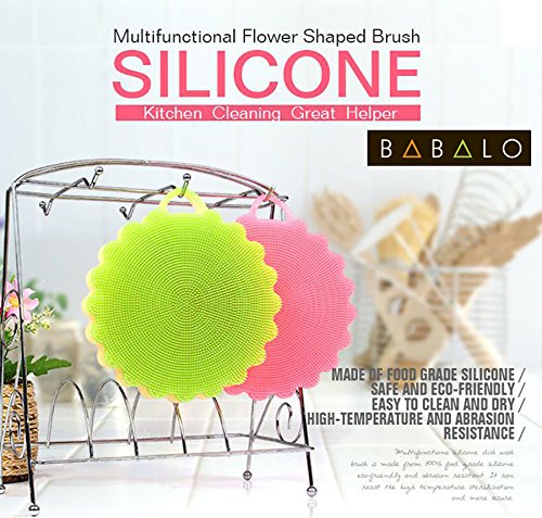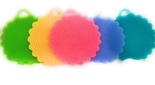 Flower Silicone Brush- (5 pack) w/ Hanging Loop by Babalo For Washing, Scrubbing, Food Grade, Non- stick, Multi-purpose, Coaster Flower Shape, Fun Colors, Non Absorbing, Heat Resistant