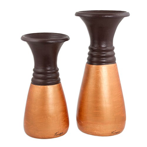 NOVICA Decorative Large Ceramic Vases, Brown and Metallic, 'Coffee And Copper' (pair)