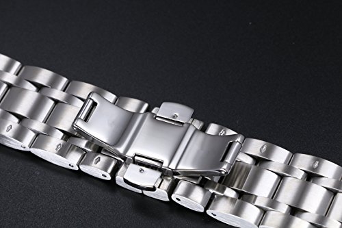 -. Feature : Thick deluxe watch band replacement, beautifully coated in silver. Band width:22mm.Thickness:4.5mm.Length:18.4cm.The length can be adjusted to 11.6cm at minimum by removing pins of links. / The metal watch band is specially designed and made for Tissot Couturier T035.407,410 and 428 series. It doesn't fit for other model numbers or brands. Please measure the width of your watch's lug end before purchase to make sure it fits for your watch. You can refer to the third photo for size guide. / This watch strap is not an original Tissot watch strap, but a watch strap suitable for watches from the brand Tissot from a third party manufacturer. There is no Tissot logo on this watch band. / Our watch bracelets are made of high-end 316L stainless steel with solid links to provide you best corrosion protection and comfortable wear. They are cut and polished in detail to make a smooth and delightful appearance. / The double click butterfly buckle, sophisticated and durable, secures your watch conveniently. The connection part is precisely made that fits perfectly with the dial.