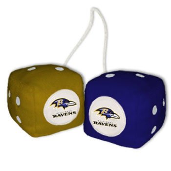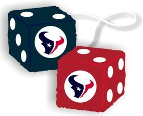 Display your team proudly with these officially licensed NFL Fuzzy Dice. The dice are 3" x 3" each made in team colors with sewn on logo. Comes with string attached for hanging.
