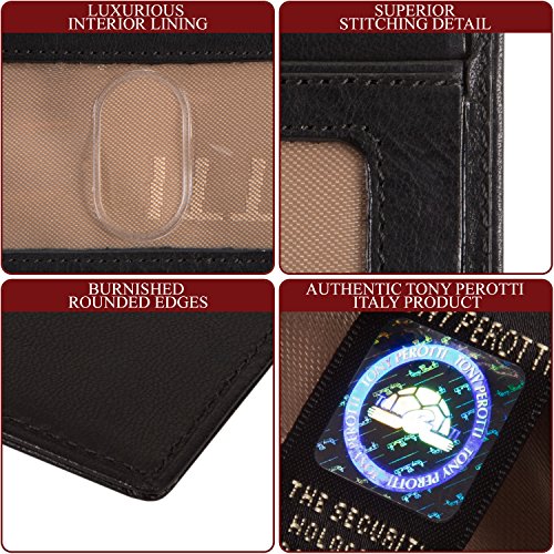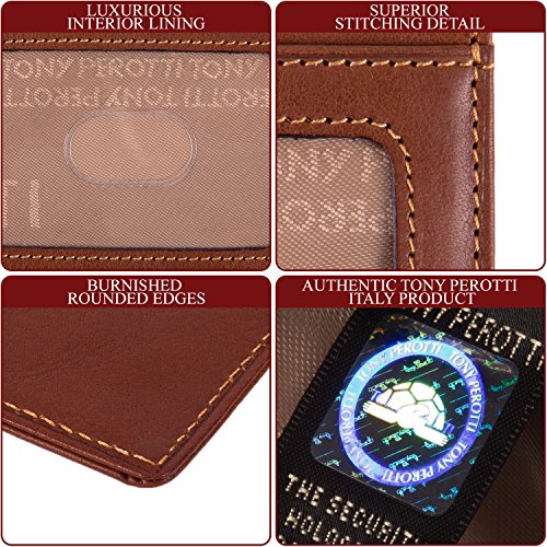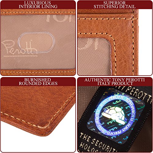 Since 1970 Tony Perotti has been constantly introducing styles that set future trends while maintaining a firm footing in the noblest Italian traditions of leather craft. All of our Tony Perotti products are made from carefully selected genuine Italian full grain hides, tanned in the most recognized expertise and leather craftsmanship based on ancient and noble Italian artisanship. The cool Italian weather prevents any flea or tick irritation to the animals, attributing to the top quality and purity of the leather without any scratches or bites. The tanning process utilizes an eco-friendly approach by using vegetable extracts without the use of toxic or polluting substances. This vegetable tanning process allows the leather to retain its natural look and feel, as well as beautifying and maturing over time to develop a pleasant patina that gives the wallet an antique look as it gets older. It also allows the leather to be easily manageable and maintained, as the vegetable oils and dye can cover any scratches or marks on the leather by rubbing it off with a fine cloth or leather cleaning lotion. We are certain that you will love and appreciate our products. Thank you for being part of this tradition!