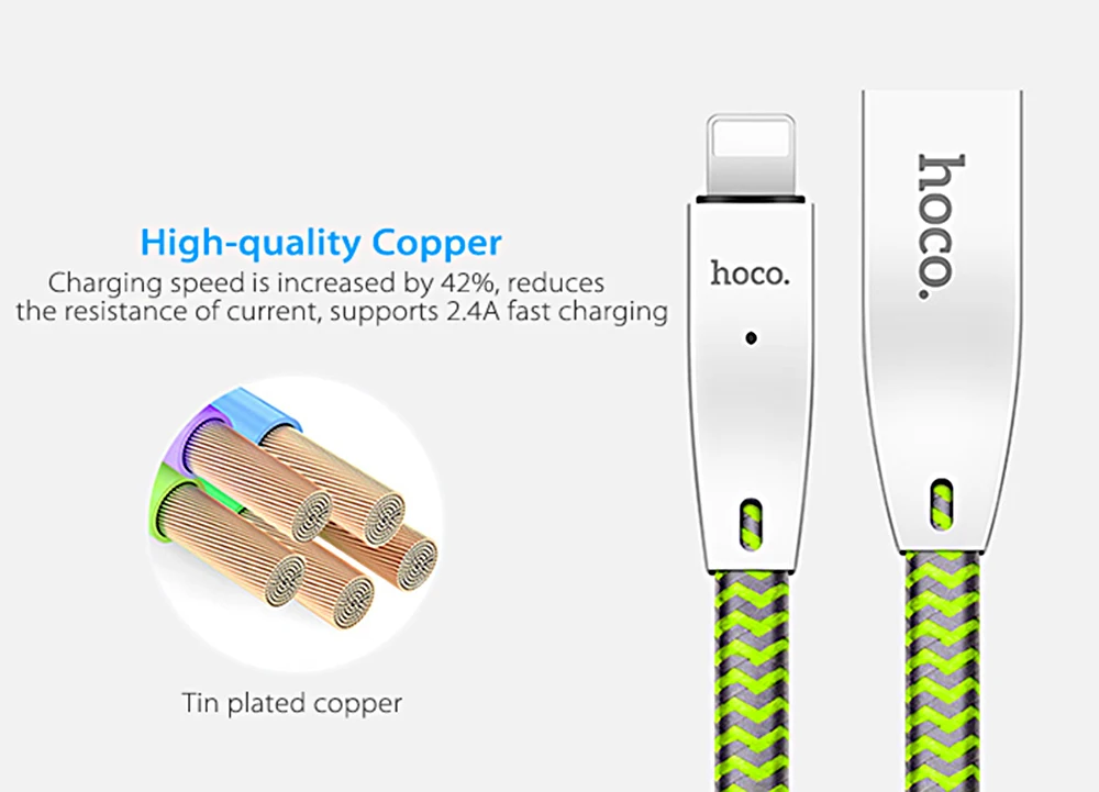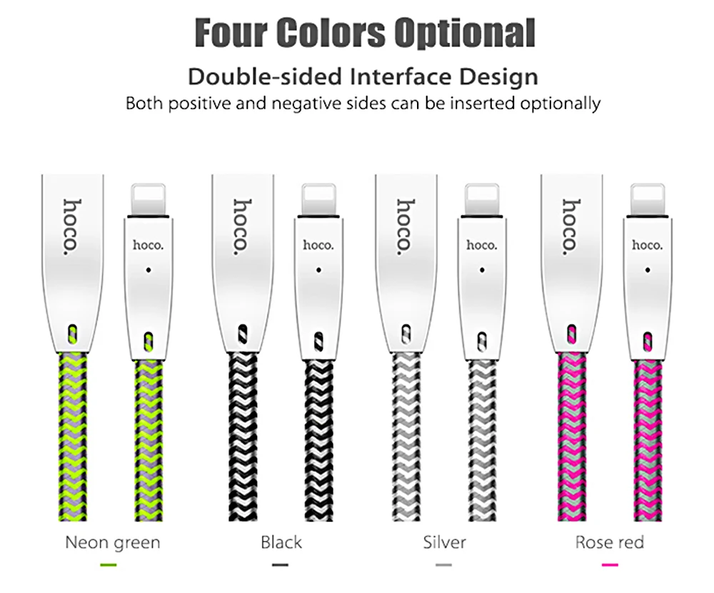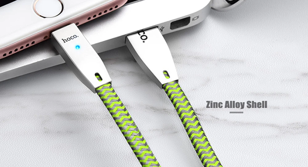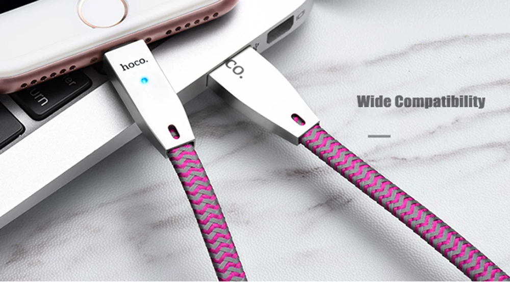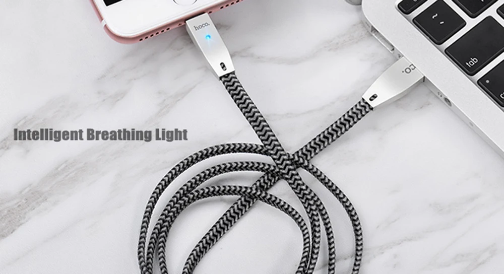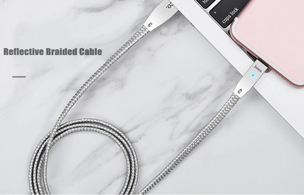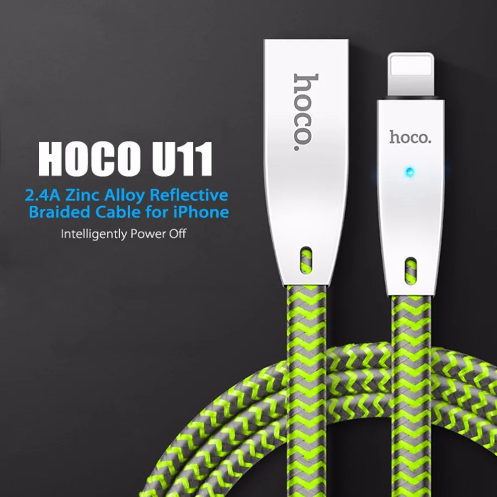 Original HOCO U11 2.4A 8 Pin Zinc AHOCO U11 2.4A Zinlloy Texture Reflective Braided Transfer Data Charging Cord with Light for iPhone
