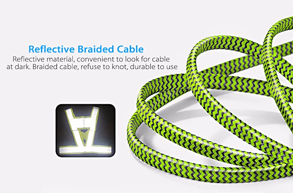 Reflective material, convenient to look for cable at dark. Braided cable, refuse to knot, durable to use