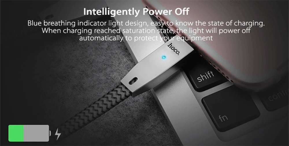 Blue breathing indicator light design, easy to know the state of charging. When charging reached saturation state, the light will power off automatically to protect your equipment