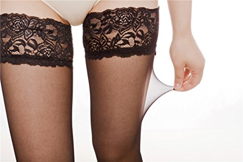 -. Binding : Apparel -. Brand : M LA BELLA -. Department : womens -. Feature : Sheer thigh high stockings with stay up silicone lace top / 88% polyamid+12%spandex / 20d sheer leg / 9cm lace / hand wash -. ProductGroup : Apparel -. ProductTypeName : SOCKSHOSIERY -. Title : Women's Lace Top Sheer Thigh High Silky reflection Stockings