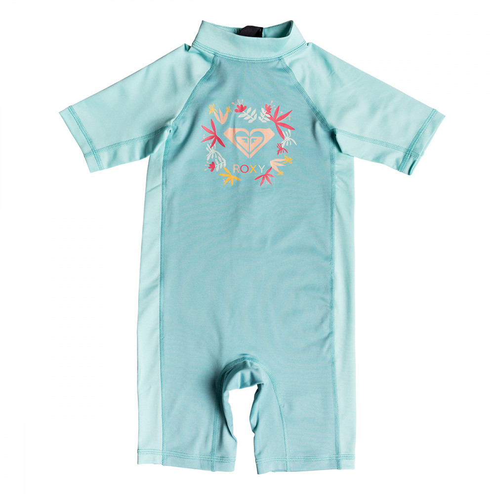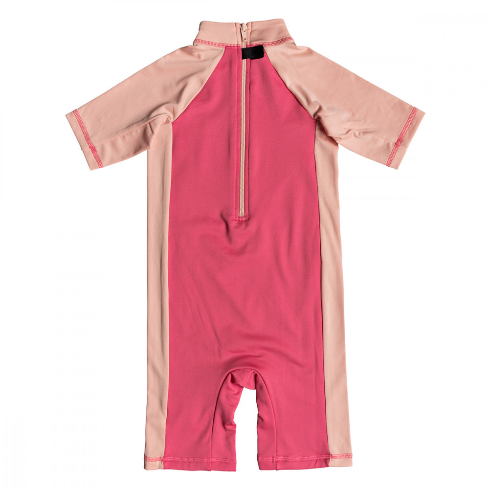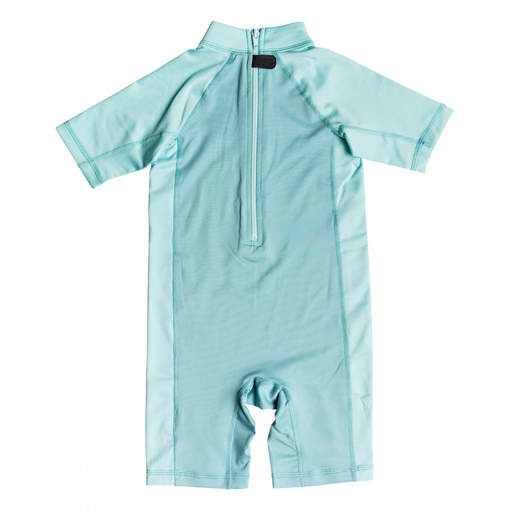 | 자외선 차단 지수 UPF 50+의 아동용 스프링 수트. 전면에 그래픽 프린트와 컬러블락 디자인이 돋보인다. 목 뒤에 지퍼가 있어 입고 벗기 편한 상품입니다. | |