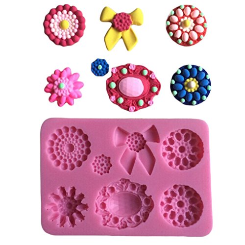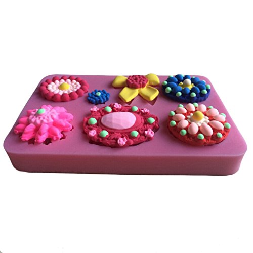 FLY Different Flowers Brooch Shape 3D Silicone Fondant Cake Mold Cake Decorating,Pink