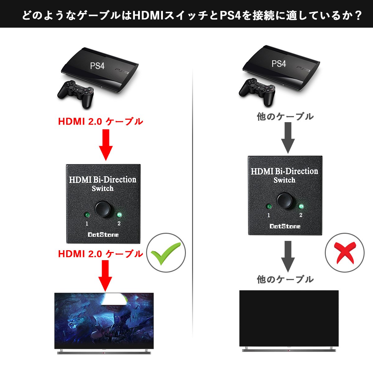 Switching content: [HDMI input 2: HDMI output 1] or [HDMI input 1: HDMI output 2]