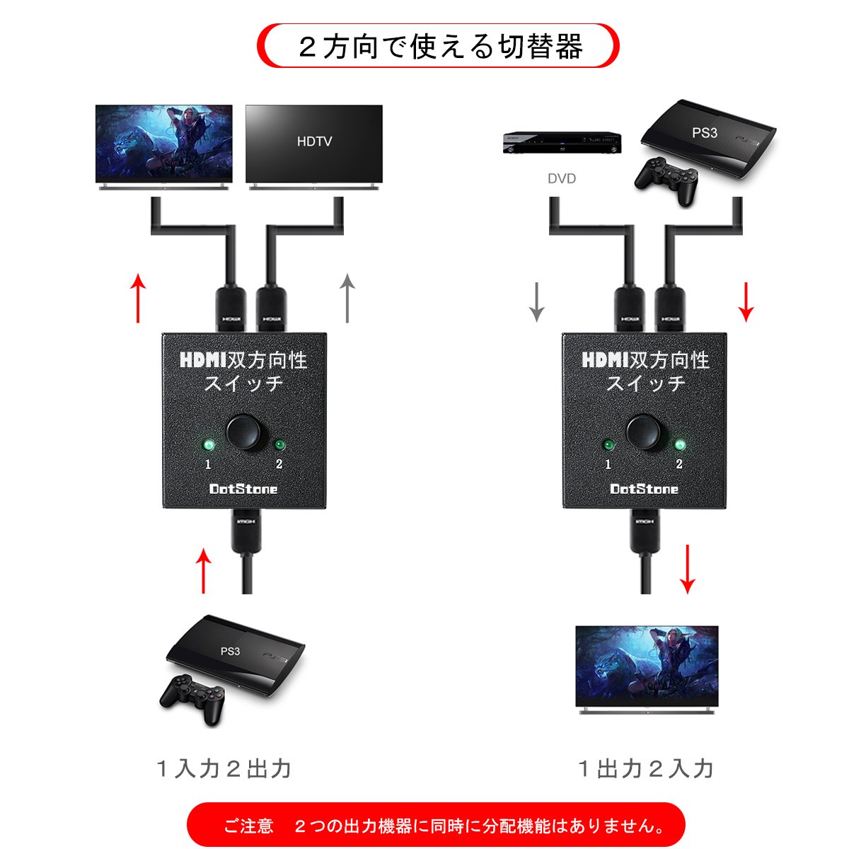 Two input devices (Blu-ray DVD / PS3) x 2 units → HDMI cable → "this product" → HDMI cable → output equipment (TV etc.) x 1