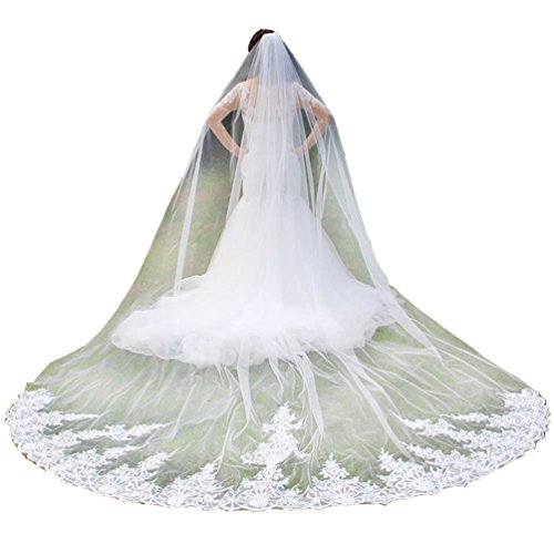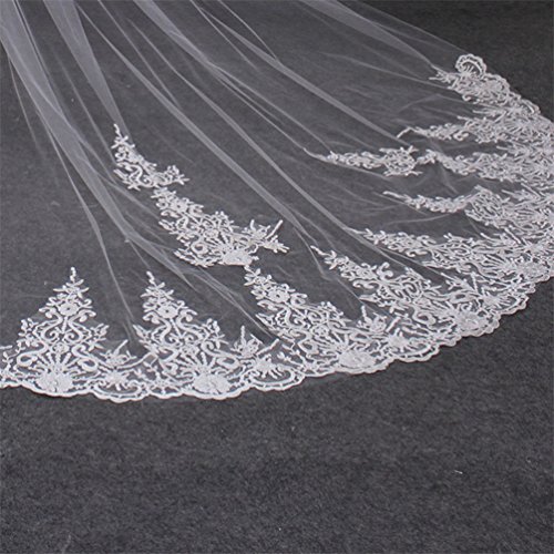 Bridal Veil One Layer 4 Meters Long Lace One-Layer Wedding Veil White