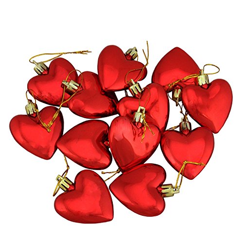 Northlight 12ct Valentines Day Red Shatterproof Heart Christmas Ornaments 2"