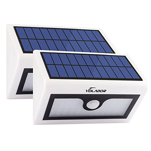 VOLADOR 2 Packs 50 LED Solar Lights, Outdoor Wireless Security Lights, Motion Activated Solar Light, Wall Mount Solar Light for Garden Patio Deck Yard Path Driveway(White)