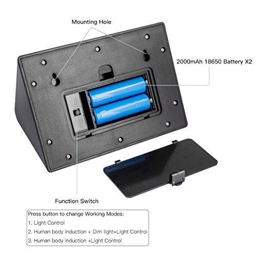 THREE WORKING MODES--1. Light Control. Auto on at night/auto off at sunrise. 2. Human body induction + Dim light+Light Control. 3. Human body induction +Light Control