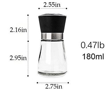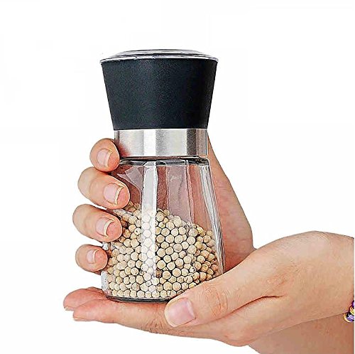 High Grips Pepper Grinder or Salt Grinder Mill, Glass Body Manual Seasoning Bottle ,5-Inches Black
