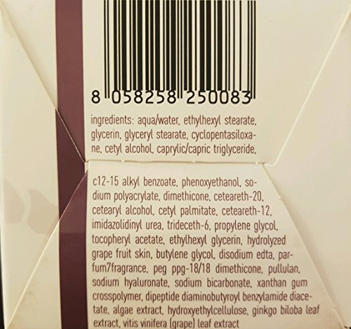 -. Feature : Extraordinary action against the signs of aging. Stretches wrinkles, pumps and firms the face skin. / No petrolatum, No parabens, No Paraffins, No artificial colorings, Nickel Tested / Cruelty Free / Natural Ingredients Grapes Resveratrol Marigold Algae Extract Moisturizer Parabens Nickel Cruelty Free / Abeauty Made In Italy