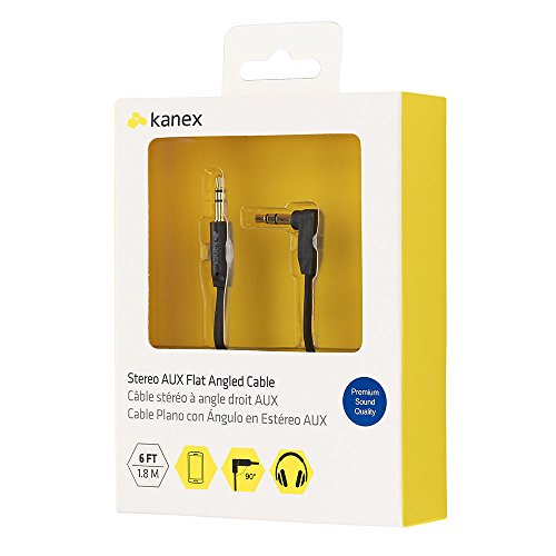 Kanex 3.5mm Stereo AUX Flat Angled Cable 6 Feet (1.8 Meters)for Apple, Android, Smartphones, Tablets, Headphones and MP3 Players-Black