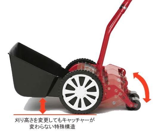 ふわふわの優しいソフトな高刈りが、校庭緑化や子供の遊び場に最適環境を提供できる芝刈機です。刃調整不要。キャッチャー脱落防止ストッパー付き。 |