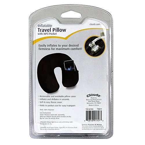 - Feature : The Cloudz Inflatable Pillow is Perfect for Travel / Inflates and Deflates in Seconds & Folds to Pocket Size for Easy Transport. / Inflates to Your Desired Firmness for Maximum Comfort and Support of Your Head and Neck / Great for Use at Home or On-the-Go. / The Irresistibly Soft and Cozy Fleece Outer Cover is Removable and Washable and Includes a Pocket for your Mp3 Player / Cell Phone
