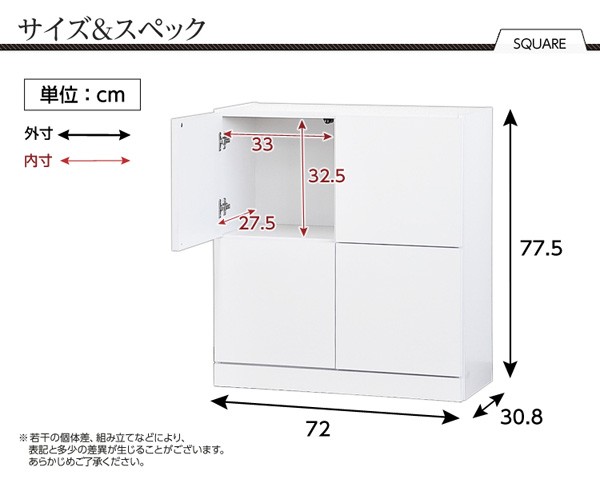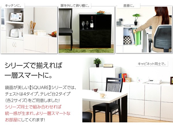 【商品について】[カラー]ホワイト、ブラック[サイズ]■外寸:幅72×奥行30.8×高さ77.5cm■収納部分内寸:幅33×奥行27.5×高さ32.5cm(全て共通)■材質:パーチクルボード、MDF/表面加工:プリント紙化粧合板、UV板■梱包重量:20kg■その他:お客様による組立品です。 ※メーカー直送品、商品代引き不可